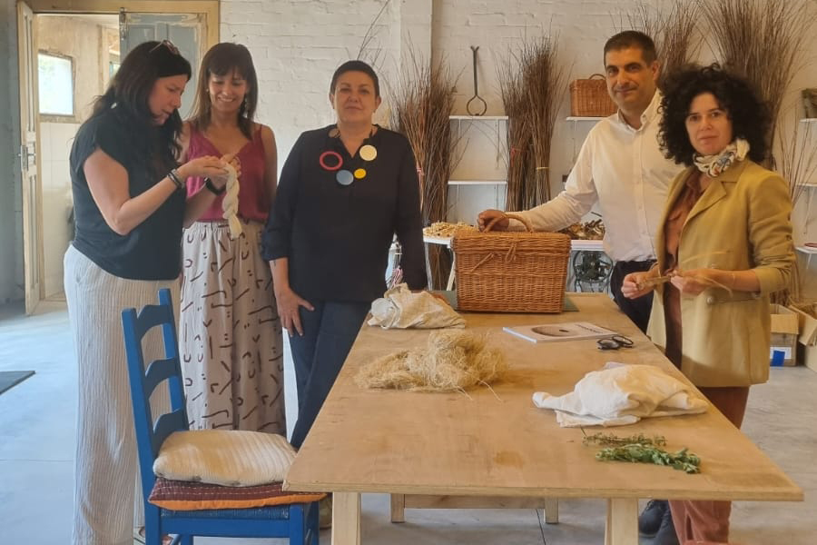 O director xeral de Comercio e Consumo e a xerente da Fundación Artesanía de Galicia visitaron o novo curso desta iniciativa do Goberno galego, o Espacio Vilaseco, Os Casares e a cesteira Idoia Cuesta