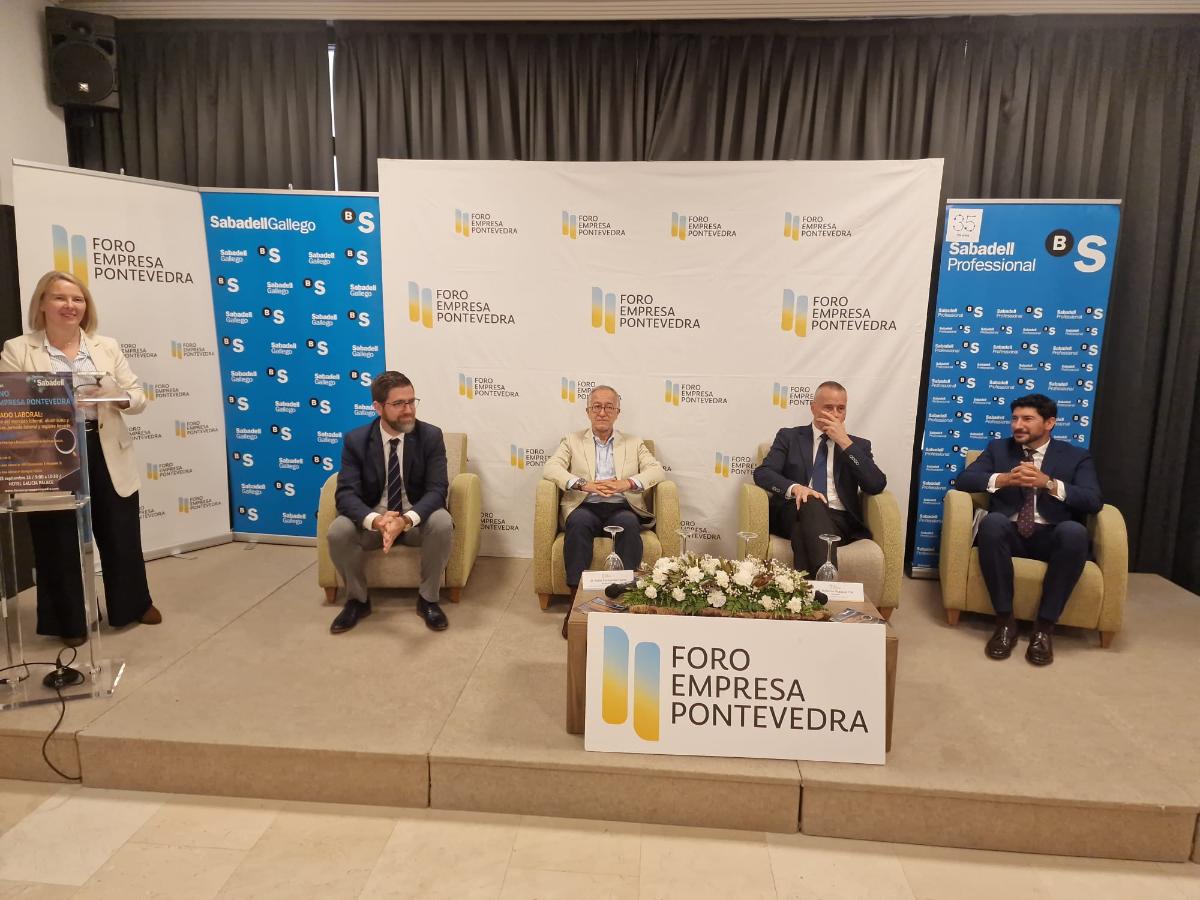 O secretario xeral de Emprego e Relacións Laborais, Pablo Fernández, participou hoxe na apertura do almorzo informativo organizado polo Foro Empresa Pontevedra, centrado no mercado laboral desde a perspectiva xurídica e onde tamén estivo o delegado territorial da Xunta en Pontevedra, Agustín Reguera. Alí, Pablo Fernández defendeu a colaboración público-privada e o diálogo social como marco clave para afrontar retos neste ámbito.