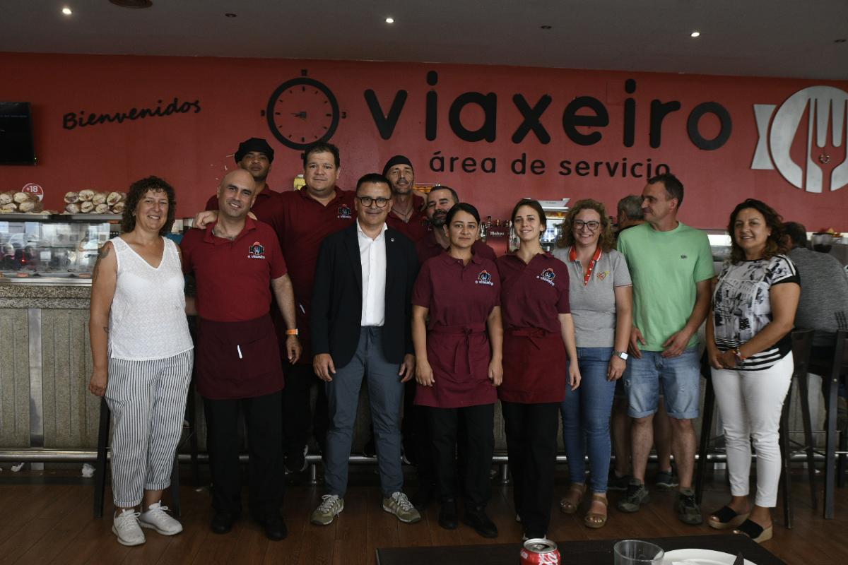 El conselleiro de Emprego, Comercio e Emigración, José González, visitó hoy la estación de servicio Vec Riós para conocer de primera mano la experiencia de las personas gallegas retornadas beneficiarias del programa Retorna Califica Empleo que trabajan en esta empresa gracias a esta iniciativa de la Xunta. En concreto, este negocio tiene contratadas a diez personas retornadas de las que siete ya están trabajando y las otras tres comenzarán en breve. En el encuentro, en el que también estuvieron la subdirectora general de Cualificaciones y Capacidades para el Empleo, Carmen Orgeira, y la alcaldesa del municipio, Eva Barrio, también se puso de relieve a importancia del compromiso empresarial y de la colaboración público-privada como factores clave para hacer posible el regreso del talento gallego del exterior y para fortalecer el tejido económico local, respondiendo a las necesidades de personal y favoreciendo la cobertura de vacantes, especialmente en el rural.
