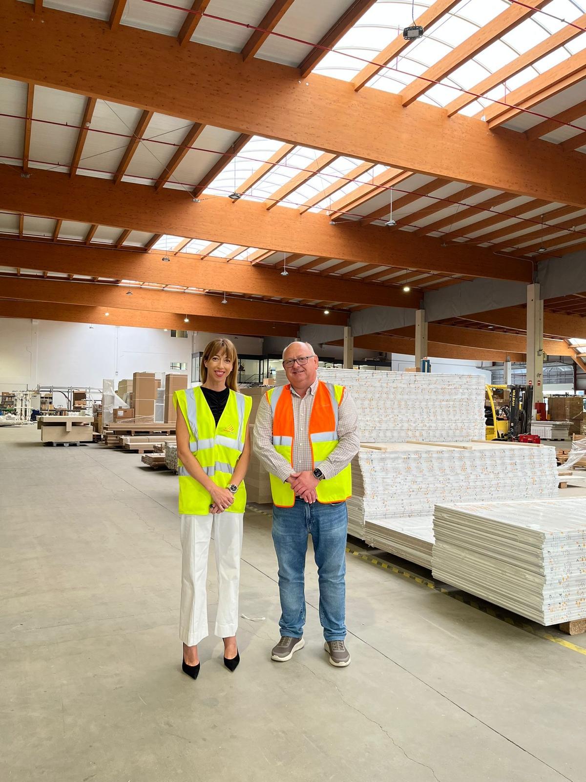 La directora general de Formación y Cualificación para el Empleo, Zeltia Lado, visitó esta mañana, respectivamente en Mesía y Ordes, el centro de producción y las oficinas y logística de la empresa de carpintería Ramón García. Durante la visita se interesó por las necesidades de talento del sector y conoció de primera mano la experiencia de la compañía en el programa Retorna Califica Empleo, que ya le permitió la contratación de 8 personas gallegas retornadas para cubrir puestos vacantes.