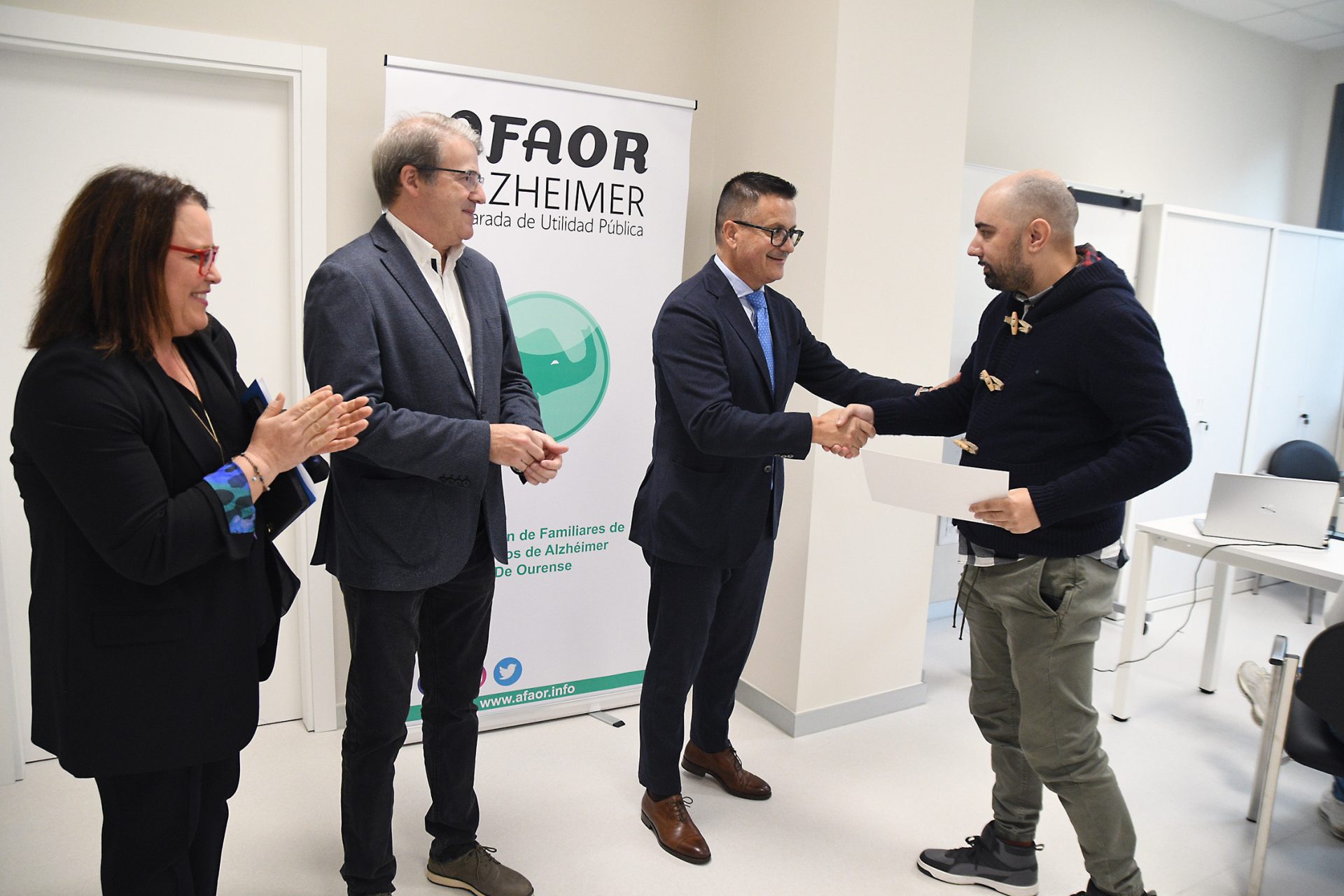 El conselleiro de Emprego, Comercio e Emigración, José González, acompañado por el delegado territorial de la Xunta en Ourense, Manuel Pardo, visitó hoy la sede de la Asociación de familiares de enfermos de alzhéimer de Ourense (Afaor) y participó en el acto de clausura del Programa Integrado de Empleo (PIE) desarrollado por la entidad en el 2024/2025. Allí puso de relieve el papel clave de estas herramientas, que la Xunta impulsa en colaboración con los ayuntamientos y entidades sin ánimo de lucro, en la integración sociolaboral de los colectivos con más dificultades de acceso al comprado de trabajo.