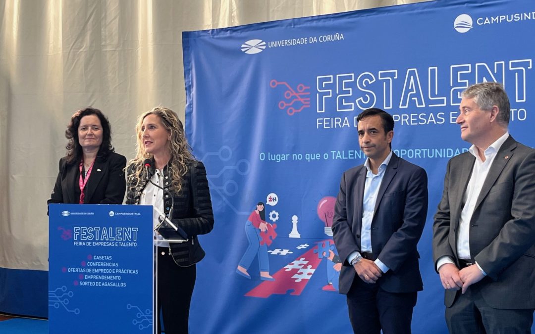 La Feria de Empresas y Talento, Festalent, reúne durante toda la jornada de hoy en el pabellón municipal de Esteiro a un total de 50 empresas e instituciones con la finalidad de tejer puentes de contacto con el alumnado universitario y de FP que está buscando su primera oportunidad laboral. Los asistentes podrán participar en actividades que faciliten su transición al comprado de trabajo, interactuando directamente con líderes en los diferentes sectores y presentando su talento en entrevistas rápidas.