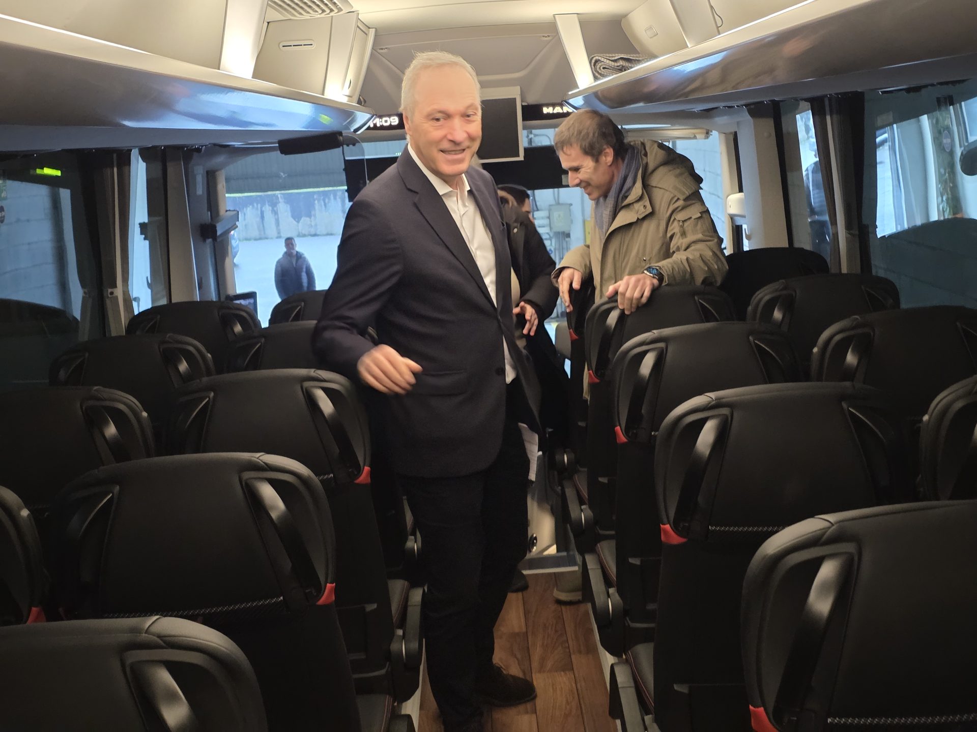 El delegado territorial de la Xunta en Pontevedra, Agustín Reguera, visitó esta mañana el nuevo autobús de la empresa Touristimes, que fue adquirido, en parte, gracias a la ayuda de 53.000 euros del programa Es-Transforma de la Xunta.