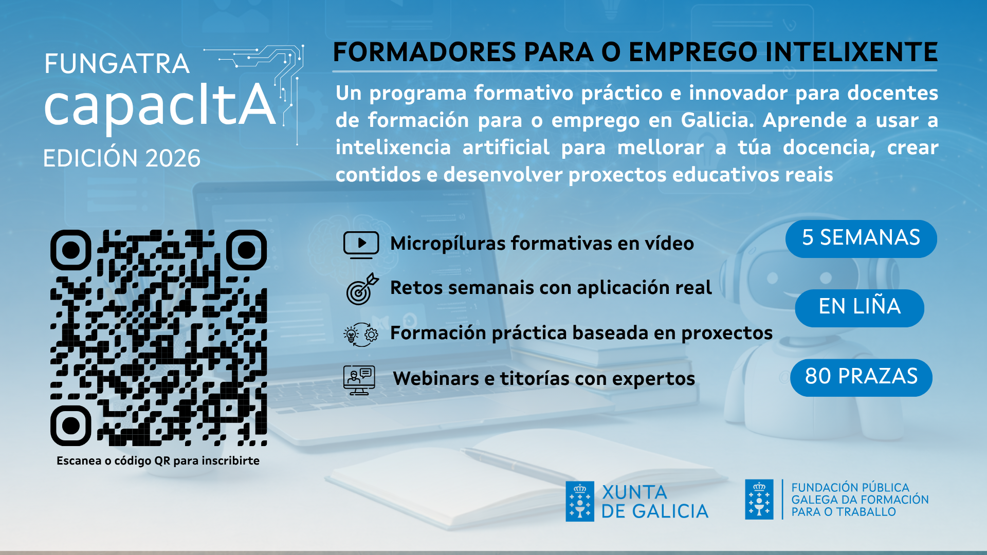 El plazo de solicitud estará abierto desde la fecha de publicación en la web de FUNGATRA hasta el miércoles 6 de mayo de 2026 a las 23:59h. La inscripción se realizará a través del formulario disponible en este enlace: https://swiy.co/FUNGATRA-CAPACITA-2026